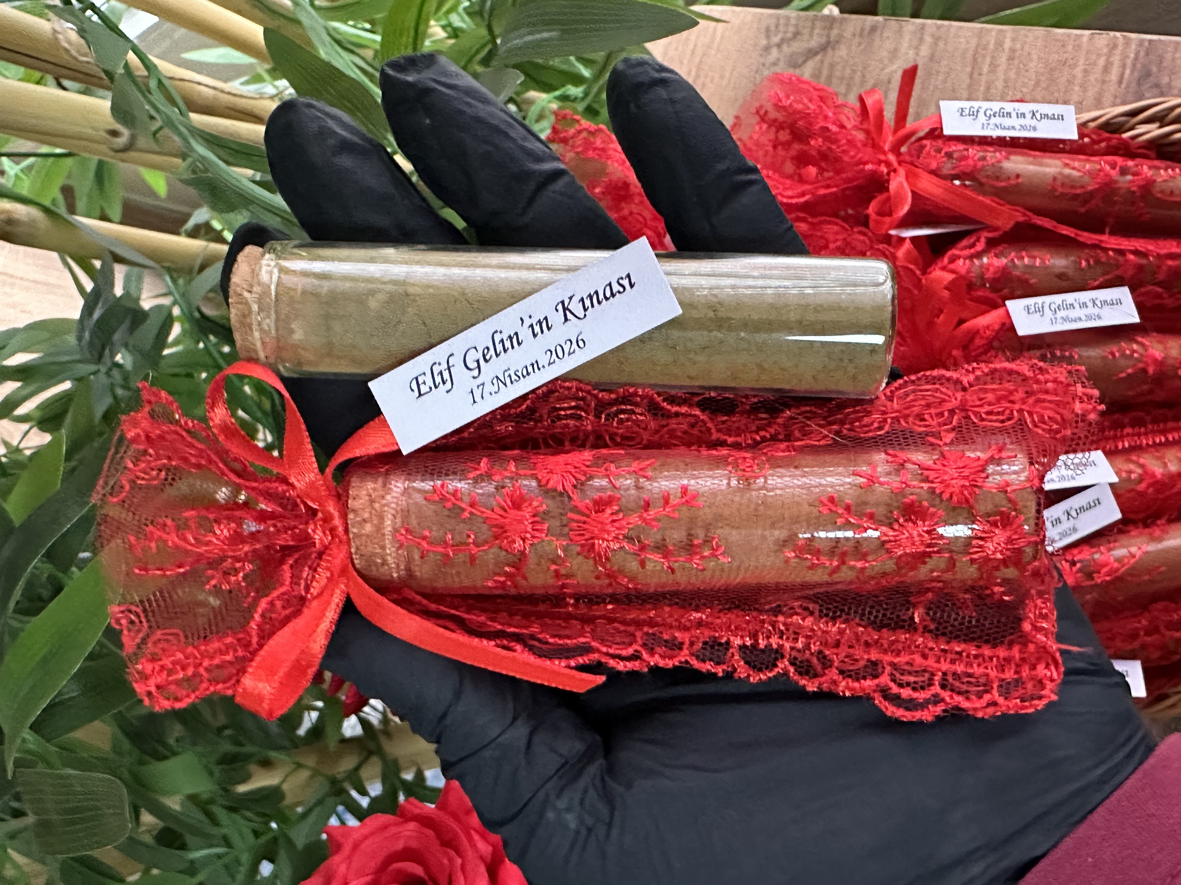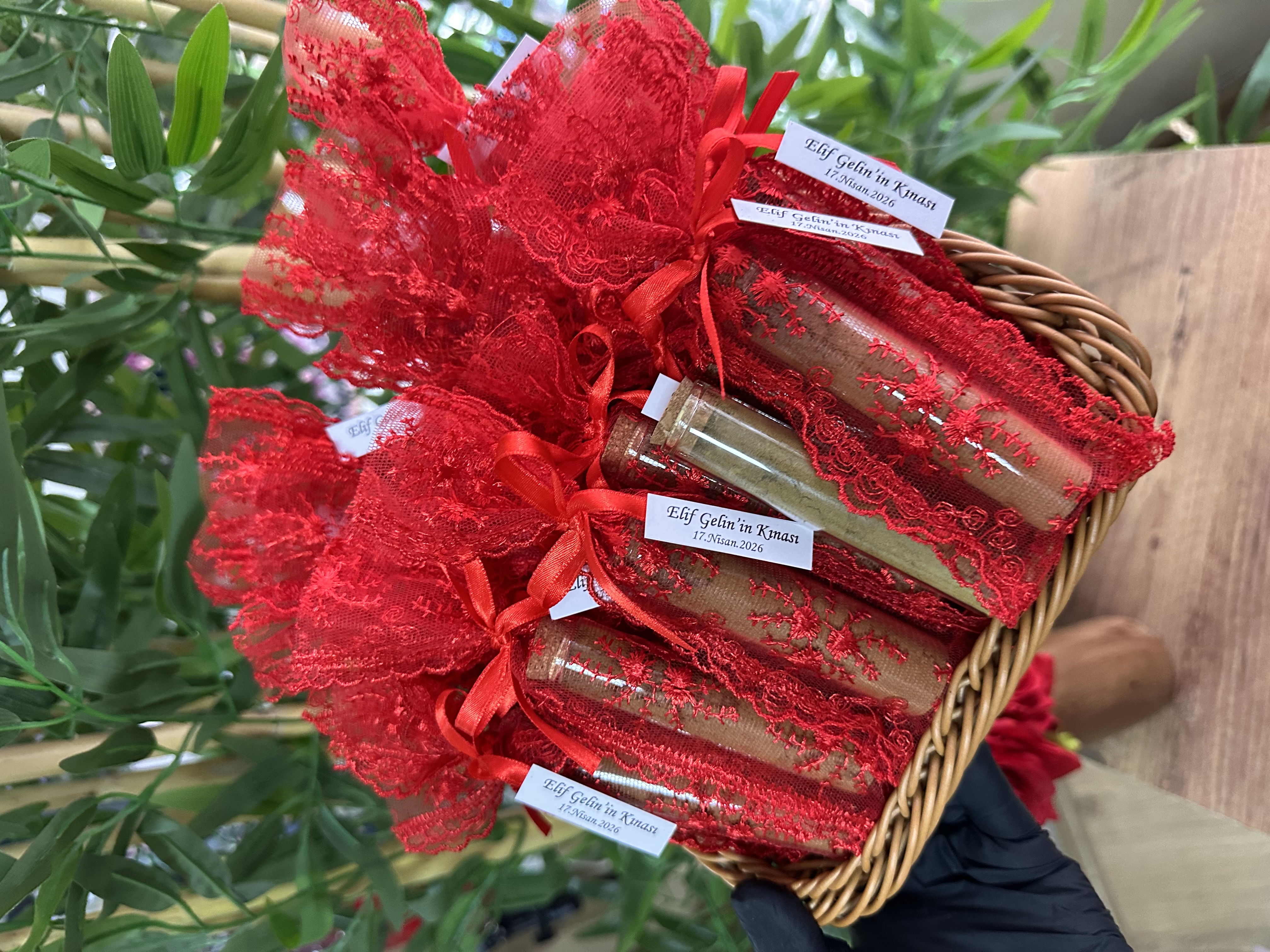 Dantel Kese İçinde Cam Tüp Şişede Kına Hediyelikleri